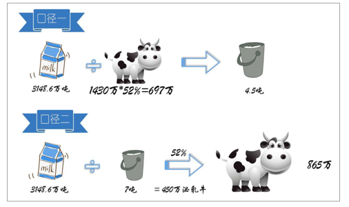 存栏:目前行业内对存栏量存在一些分歧,我们采用两套口径测算比较:口径一:以国家统计局存栏数(17年,1340万头)为出发点测算,奶牛单产可倒算至4.5吨/年。口径二:以农业部奶牛单产(17年,7吨/年)为出发点测算,奶牛存栏为865万头。