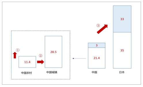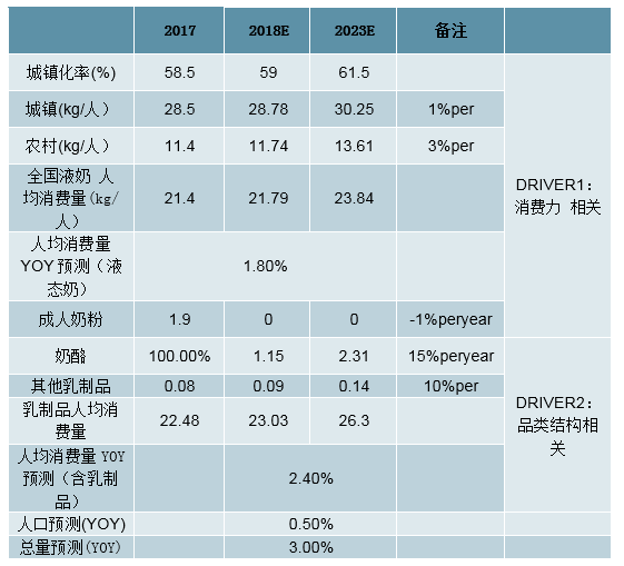 对比日本,城镇化、品类扩张是提升人均消费量的两个driver。总体消费量中国约为日本的1/3,1)品类结构是差距的最重要的原因,液奶消费量中国:日本为21:35,而干乳制品为3:33,以奶酪为例,中国的人均消费量为0.1kg,而日本为1.9kg,但每kg奶酪还原至原奶的对应比例为1:10,因此仅奶酪一项,对应至原奶已经有18kg的人均消费量差距。2)液态奶方面的差距则由城镇化率和消费力水平造成,由于我国的城镇乳制品消费量约为农村的2.5X(参考表5),我们计算出可比口径的城镇消费液奶约为28.5kg,这与日本的35kg液奶已经较为接近,我们认为未来城镇提升乳品人均销量的空间相对不大,更多是来自于农村消费能力的提升(包括渠道下沉带来的渗透率进一步提升),以及城镇化率的提升。综上,我们认为,中国人均销量水平提升主要来自于①农村消费水平提升、②城镇化和③品类多元的贡献。前两者与经济相关性较强,而品类多元则来自于消费者培养、饮食西化等社会文化变化的节奏。乳制品作为半必需、消费升级产品,我们认为其人均消费量的变化,整体跟随经济景气度,受益于结构性复苏机会和某些品类需求爆发(如奶油、奶酪等),总体呈现出一种螺旋上升的曲线