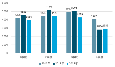 2016-2018年1-4季度中国饮料销售量情况 单位:万吨