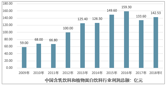 2009-2018年中国含乳饮料和植物蛋白饮料行业利润总额情况