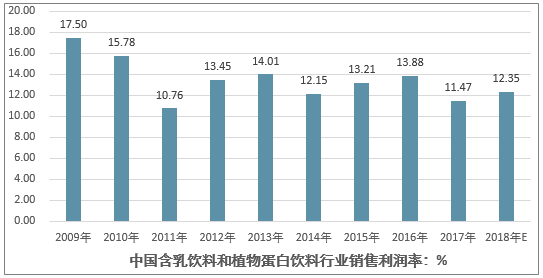 2009-2018年中国含乳饮料和植物蛋白饮料行业利润率情况
