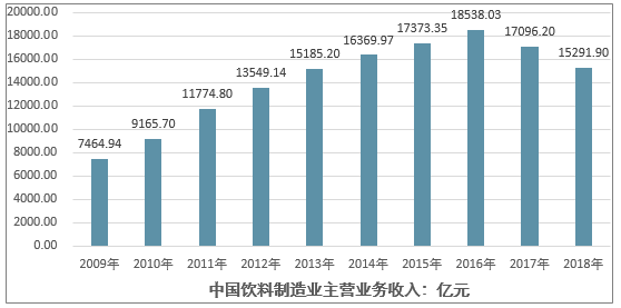 近年来,随着国民经济持续稳定增长、居民消费水平的提升及消费结构的升级,推动国内饮料工业快速增长。国内饮料制造业(包含酒、精制茶)主营业务 收入从 2009年的 7464.94亿元增长到 2018 年的 15291.90 亿元,复合增长率达到 12.00%。