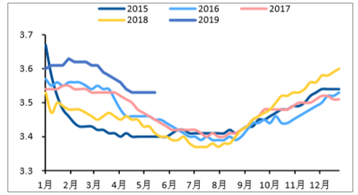 由于甘蔗的生长具备三年的周期性,2014年9月以来糖周期进入第五年,18/2019榨季为国内白糖增产周期的第三年,因此估计19/20榨季将大概率进入甘蔗减产周期,从而带动糖价上行。此外白糖长期消费需求上升、国内库存降低以及主要出口国减产趋势明显都将利多白糖价格。白糖价格上行将在一定程度上加大乳企在经营成本上的压力。
