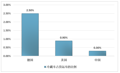2018年中国冷藏车占比仅为0.3%,该比例仅为美国的三分之一,德国的八分之一。