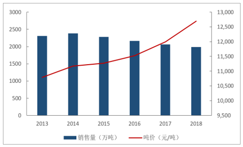饮用奶市场量降价升,呈现低增态势。18年乳制品市场规模达到2521亿元,同比+2.0%。增速+2.87pct,营收自15年不断下降以来,首次实现小幅增长。总销量达到1986万吨,同比-3.6%,增速+1.15pct,自15年以来,总销量呈不断下降态势。均价18年达到12690元/吨,同比+5.81%,增速+1.74pct,均价保持持续增长。