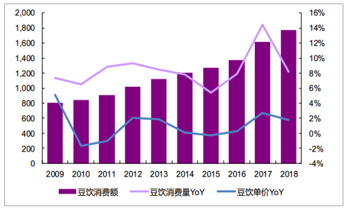 横向及纵向比对豆类饮品单价可见其仍有相当提升空间,龙头乳企亦相继布局。伊利于17年底推出“植选”豆乳饮品,蒙牛同年也上市Silk美式豆奶品类,其植物基饮料通过与经销体系协同、强化区域发展。Silk于17/18年分别实现32.8%/5.8%的同比增速。此外,传统食品饮料制造商如达利食品也于17年推出豆奶品牌豆本豆,并迅速提升市场份额。当前该品类仍处于消费者教育阶段,但随着行业领先企业的纷纷加入,该品类在需求增长及品质提升上均有发展空间。