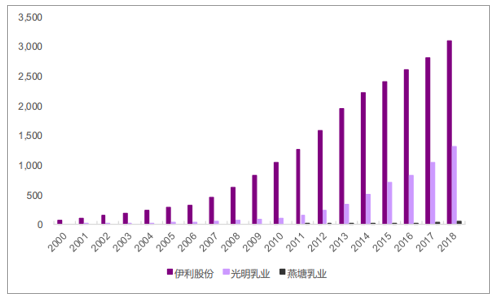 而国内龙头乳企基于其强大品牌力和渠道渗透力,在消费者决策方面发挥显著影响。2018年国内快销品牌中,伊利和蒙牛为消费者触及数排名首两位的公司,渗透率分别达89.6%/87.2%,维持2017年地位,且伊利消费者触及数较前一年高基数增长6%;同时光明乳业排名第七位。不同规模乳企在研发投入上差距较大,龙头企业持续的投入进一步支撑其新产品的开发推广,形成良性循环,强化其行业领先地位。数据显示,伊利2018年专利数量高达3102个,且增长迅速,较17年新增近300个;光明乳业18年专利数量达1323个,较17年也增加近300个;而规模较小的区域型乳企燕塘乳业18年专利则仅为55个。