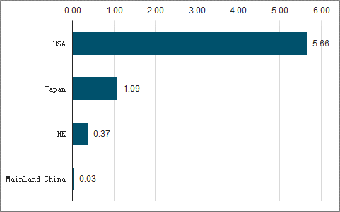 2018年各市场奶酪人均奶酪消费量(kg/人)