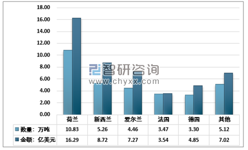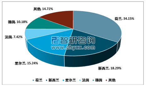 2017年我国婴幼儿配方奶粉进口主要国家及地区占比分析(按金额)