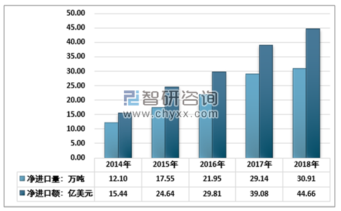 受2008年中国奶粉污染事件影响,多个国家颁布相关禁令,禁止从中国进口乳制品,与此同时我国消费者对乳制品安全的信心也没有得到相应的恢复,2014-2018年我国婴幼儿配方奶粉进口快速增长,出口规模小,贸易逆差严重,外贸依存度大,2018年净进口量达30.91万吨,贸易逆差达44.66亿美元,同比2017年增长14.28%,我国属于奶粉净进口国家,进出口额之间差距较大且呈逐年扩大趋势。