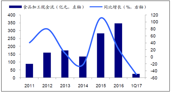 近年来食品加工行业经营活动现金流情况