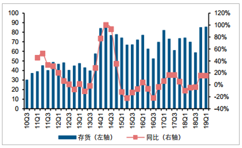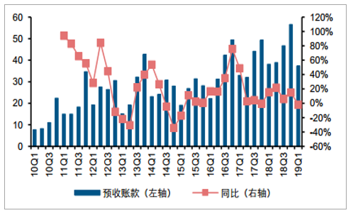 2018年末乳制品行业货币资金192.58亿元,同比变动-33%;2019年一季度末货币资金191.75亿元,同比变动-28%;2018年末乳制品行业应收账款39.94亿元,同比变动14%;2019年一季度末应收账款43.55亿元,同比变动11%;2018年末乳制品行业预收账款56.59亿元,同比变动15%;2019年一季度末预收账款37.32亿元,同比变动-2%;2018年末乳制品行业存货84.95亿元,同比变动16%;2019年一季度末存货85.4亿元,同比变动15%。