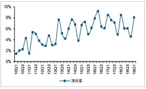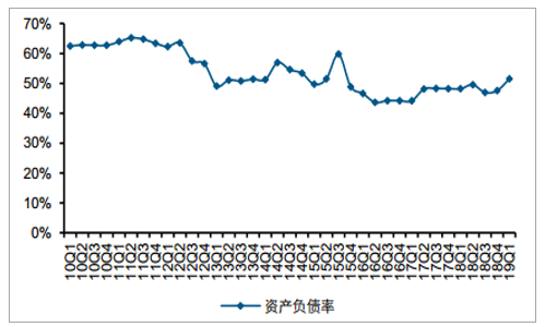 2018年Q1/Q2/Q3/Q4及2019年Q1乳制品行业资产负债率分别为48%,50%,47%,48%,51%。2018年至2019年Q1以来乳制品行业的资金周转、资产运营较平稳,整体负债率良性。