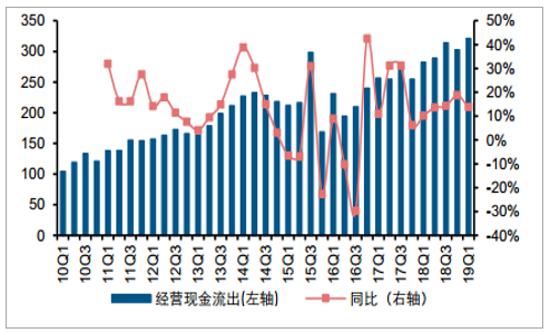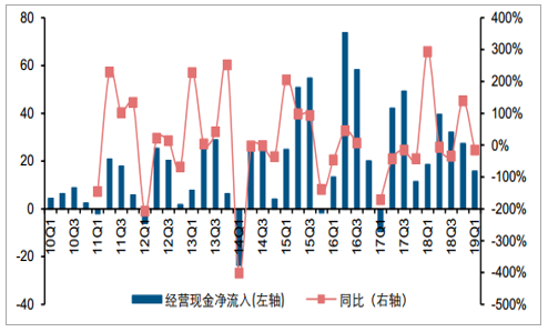 2018Q1/Q2/Q3/Q4乳制品行业经营性现金流净额分别为18.61亿元/39.6亿元/32.14亿元/27.37亿元,分别同比变动293.73%/-5.96%/-34.79%/139.13%;2019年Q1乳制品行业经营性现金流净额为15.78亿元,同比变动-15.19%,其中流入337.1亿元,同比变动12%,流出321.31亿元,同比变动13.79%。