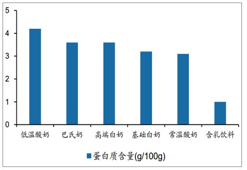 单位低温酸奶蛋白质含量高于其他品类乳饮