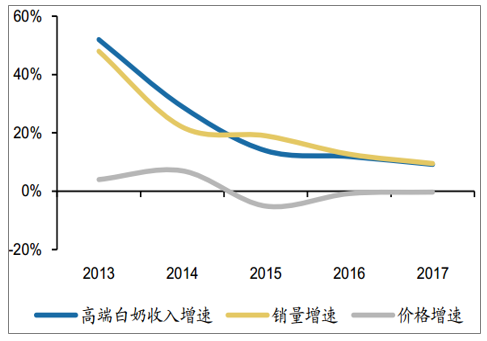 (2)预计未来5年高端白奶收入有望复合增长 10%左右