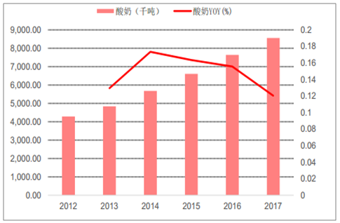 中国酸奶消费量及增速