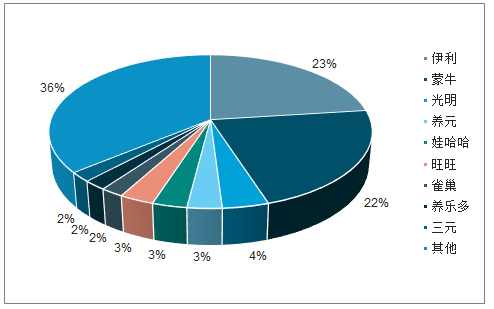 2018年我国奶类品牌份额