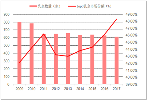 我国奶类行业数量和市场集中度