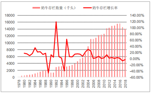 我国奶牛存栏数量及其增长率