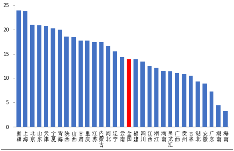 各地区城镇居民人均鲜乳品购买量(kg)