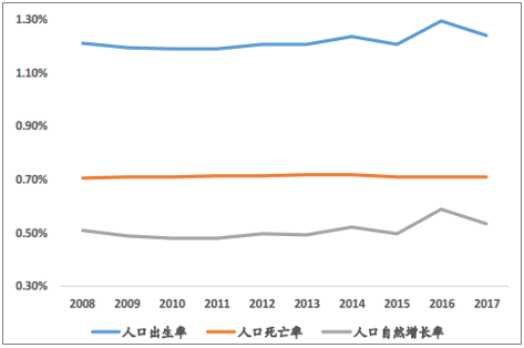 我国人口自然增长率持续在 0.5%以上