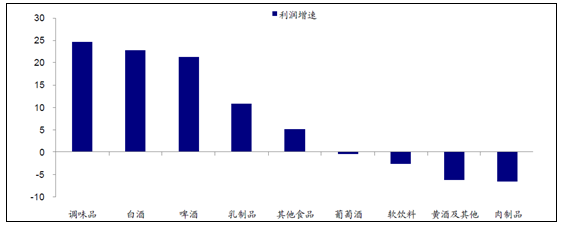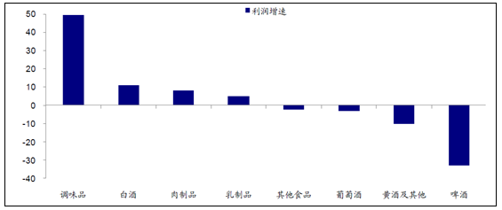 2016 年食品饮料板块子行业归母净利润增长比较(单位:%)