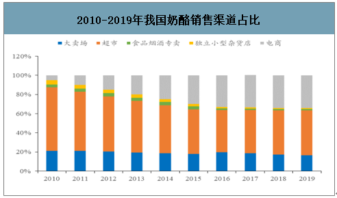 2010-2019年我国奶酪销售渠道占比