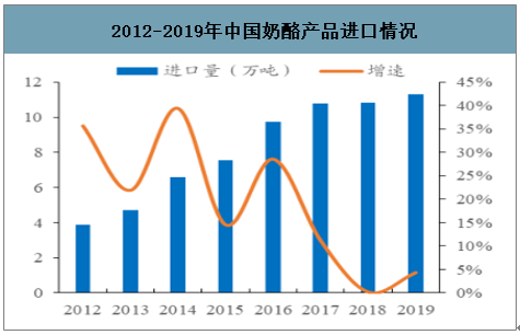 2012-2019年中国奶酪产品进口情况