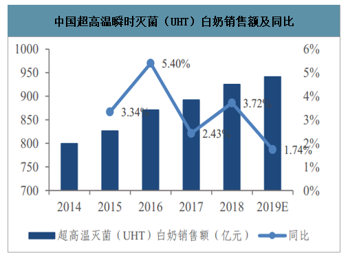中国超高温瞬时灭菌(UHT)白奶销售额及同比