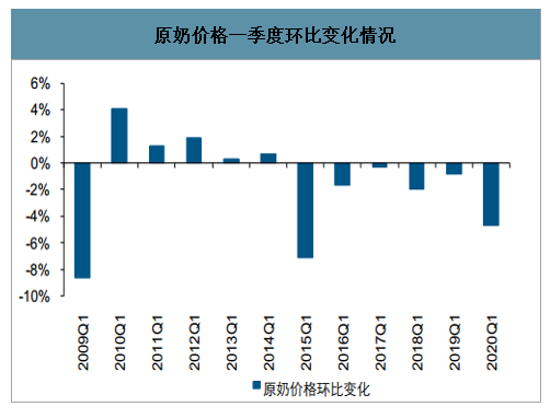 短期需求承压,原奶价格环比下行。截止至4月初,生鲜乳价格为3.62元/千克,相较于2020年初3.83元/千克的价格,环比下降5%,自2015年以来一般一季度原奶价格也会呈现环比下降的趋势,主要是因为原奶供需存在错配的因素,一季度产量增加,但是春节之后往往是需求的相对淡季。但是今年由于春节“旺季不旺”使得供需错配的现象更加明显,导致奶价环比下行幅度呈现加大的态势,下游品牌乳企为了产业链的健康发展存在喷粉的情况。