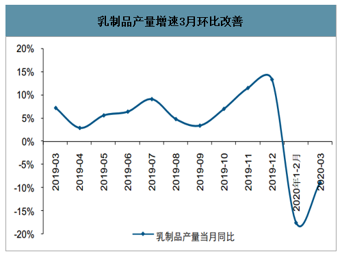 乳制品具备刚需的消费属性,3月需求环比恢复。乳制品尤其是液态奶由于有礼品消费的属性,礼品属性的消费场景受限,以及学校延迟开学,乳制品终端需求受到一定抑制,乳制品产量1-2月累计下滑17.5%。同时乳制品具备必需品的消费属性,乳制品产量3月同比下滑8.9%,较1-2月环比改善。牛奶作为健康饮品,疫情之后有望加速渗透。乳制品疫情之后消费者对于健康意识的提升,有望加速乳制品行业渗透率的提升,2003年非典之后,乳制品行业依旧保持了快速的发展,且从2003年下半年开始呈现加速的趋势。