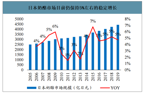 日本奶酪市场目前仍保持5%左右的稳定增长