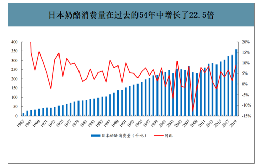 日本奶酪消费量在过去的54年中增长了22.5倍