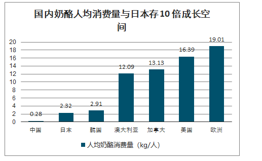 国内奶酪人均消费量与日本存10倍成长空间
