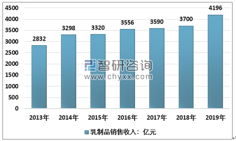 2013-2019年中国乳制品行业销售收入