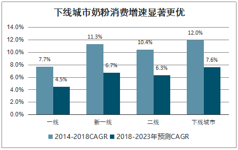 消费升级趋势延续,低线增速预计更优。分产品类别来看,2014-2018年超高端、高端及普通品类复合增速分别为39.5%、20.5%及5.0%,未来5年增速水平预计出现回落,但高端类别增速仍将显著高于普通类别,消费升级趋势明显。分地区结构来看,2014-2018年一线、新一线、二线及下线城市复合增速分别为7.7%、11.3%、10.4%及12.0%,新一线及下线城市表现较优,考虑低线城市相对更快的出生人数增速、城镇化及收入水平提升下更大的消费升级空间,预计未来5年增速也将延续低线城市增速更优的现状。