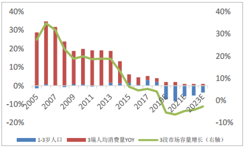 综合以上三个方面,我们对奶粉行业的整体市场规模进行了测算,预计2023年零售端市场规模达到1600亿,CAGR约为1%,市场空间增量有限。