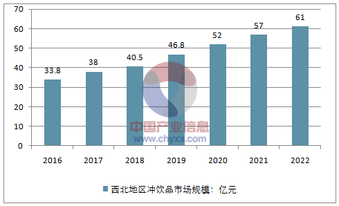 到2022年西北地区冲饮品市场规模将增长到61亿元。