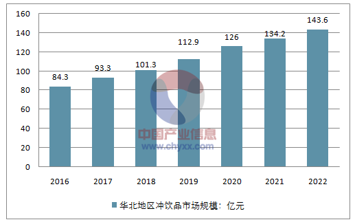 到2022年华北地区冲饮品市场规模将增长到143.6亿元。