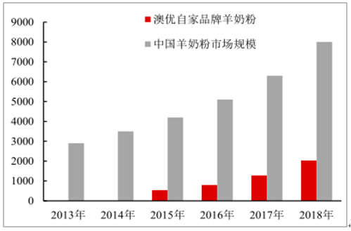 2013-2018年澳优羊奶粉销售额规模(百万元)