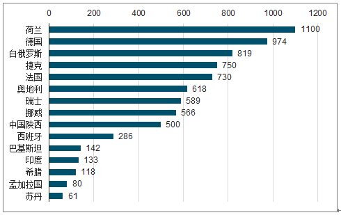 平均单产最高的 泌乳羊多来自 欧洲 国家,包括荷兰、德国、白俄罗斯、捷克、法国等,羊奶单产量可以达到 700kg/只/年以上水平,原因是欧洲泌乳羊品种优良、持续优化,并且饲养管理水平高。从总产量来看,欧洲的前三大羊奶产国分别为法国、西班牙、希腊。亚洲主要的山羊集中在印度、孟加拉,但泌乳羊品种有所退化、管理粗放,单产量明显低于欧洲国家。中国较为优质的奶山羊主要集中在陕西,随着科学化养殖水平逐步提升,2018 年陕西奶山羊平均单产量提升到500kg/只/年水平。