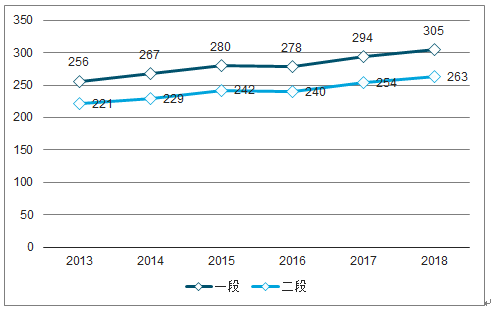 而从均价来看,一段奶粉的定价更高。2018 年一段/二段/三段的均价分别为每公斤 308 元/263 元/203 元。各阶段产品的涨价幅度基本一致,2018 年均在 2%-4%左右。