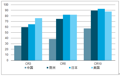 2018 年各国奶粉企业集中度(按销售额市占率%)