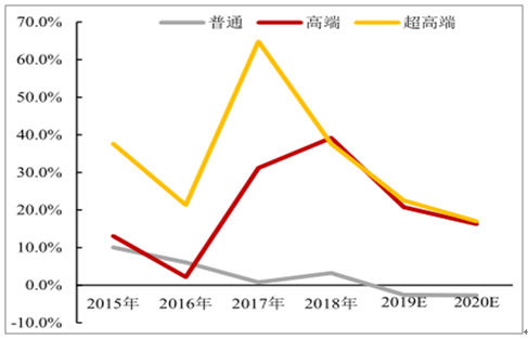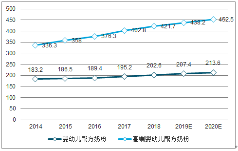 2014 年我国奶粉中普通、高端、超高端的市场占比分别为 78%、15%、7%,而到 2018 年比例变化为 62%、21%、17%,超高端、高端线的合计占比在 4 年期间增加了 16pcts 至 38%。预计,未来两年超高端、高端线的增速将在继续保持在 10%以上,超过行业整体。