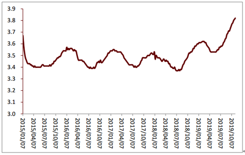 国内原奶价格走势(单位:Rmb/kg)