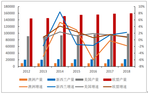 主要四大乳制品出口国减产持续(千吨)