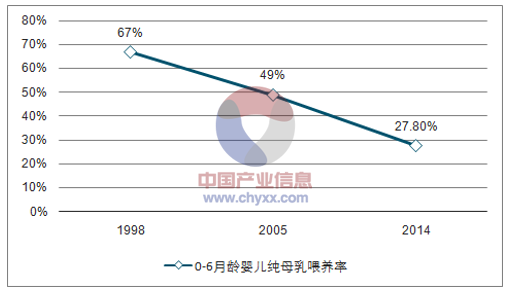 我国 0-6 月龄婴儿母乳喂养率呈下降趋势