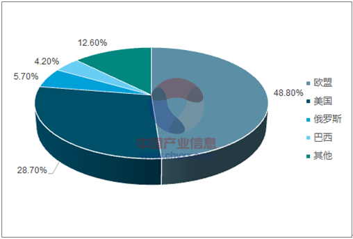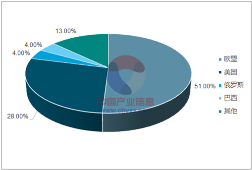 作为全球两大奶酪生产地区,欧盟和美国也是主要的奶酪消费地区,2016年,欧盟的奶酪消费量为912万吨,占全球奶酪消费总量的48.8%,居世界第一位,美国的奶酪消费量为535万吨,占全球奶酪消费总量的28.7%,居世界第二位。