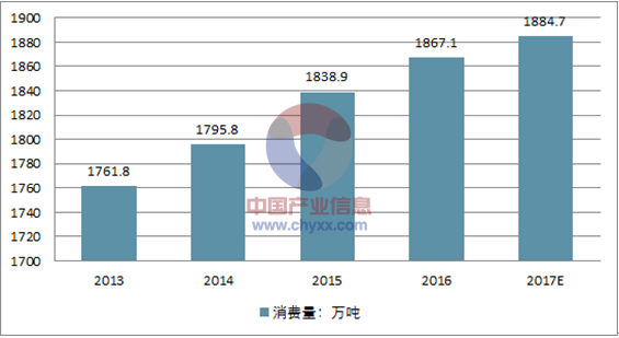 近年来,全球奶酪产量上升,供应增多,消费量也随之增加。2013到2016年全球奶酪消费量年均复合增长率为1.95%,预计2017年全球奶酪消费量将超过1880万吨。